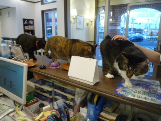 受付に3匹の猫が集合!