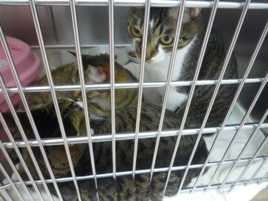 みかんちゃんは他のネコ達とあまり仲良く出来ませんが、しゃぼんちゃん・ちょぼちゃんとは仲良しです(-`ェ´-)