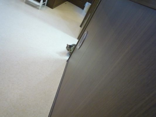 楽しそうな気配を察知したのか、みかんちゃんが密かに覗いていましたが