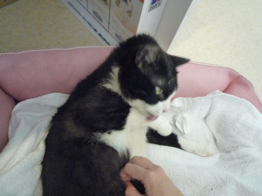 たまに外してあげると手をなめなめ・・・