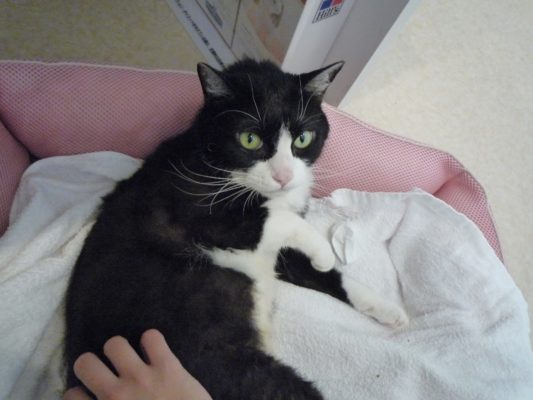放っておくと、自分の爪を引きちぎってしまうのです(´+(エ)+`)