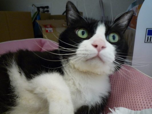 ハチは常にカラーを装着しています。