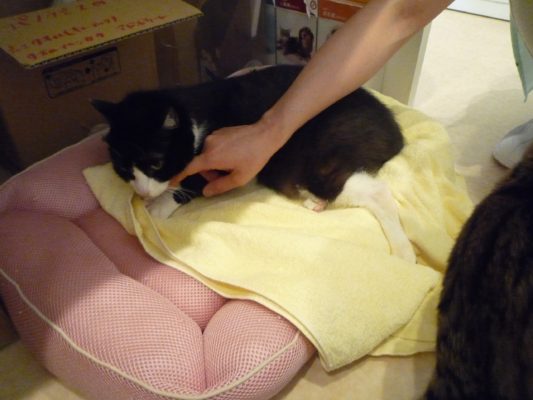その後は特にじゃれ合うこともなく一定の距離感のまま肉球をかじらないよう注意されているハチを横目にふらーっとしゃぼんは去っていきました( ・ω・)