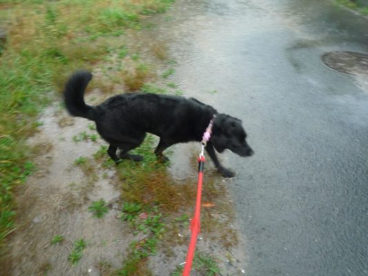 先日は土砂降りでしたが、さくらが散歩をねだってきたので少しだけ外へ出ました。