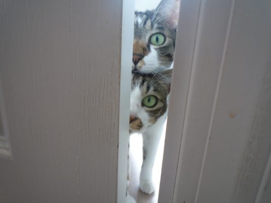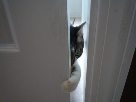 しゃぼんちゃんがドアを開けきれず踏ん張っているのをからかいながら見ていると、突然ちょぼんと交代してあっという間に2匹とも逃走…(・ω・`)