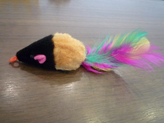 遊び相手になるようにと、ねずみのおもちゃを入れてあげました。
