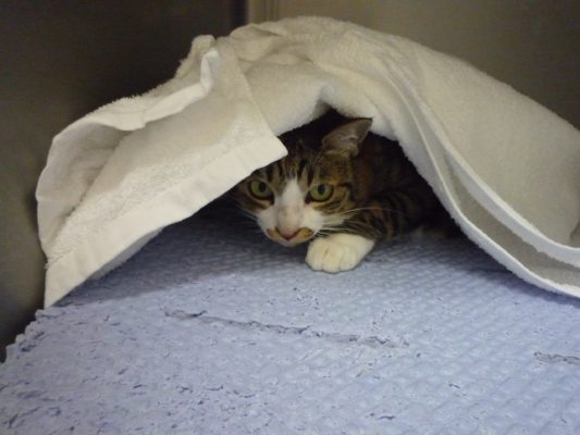 こんもりと膨らむタオル、まだ犯人は中に居るようです(`・ω・´)