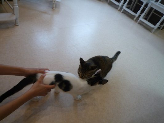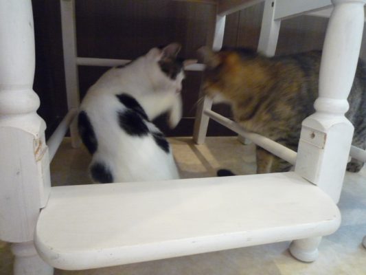 やっぱりボンが怒り、弱い猫パンチを繰り出しケンカ別れしていました(・ω・`)