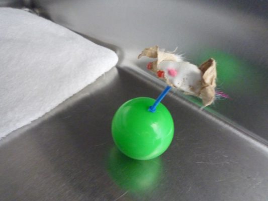 案の定購入してあまり日が経っていませんが、おもちゃのねずみはボロボロになってしまいました(◎-◎;)