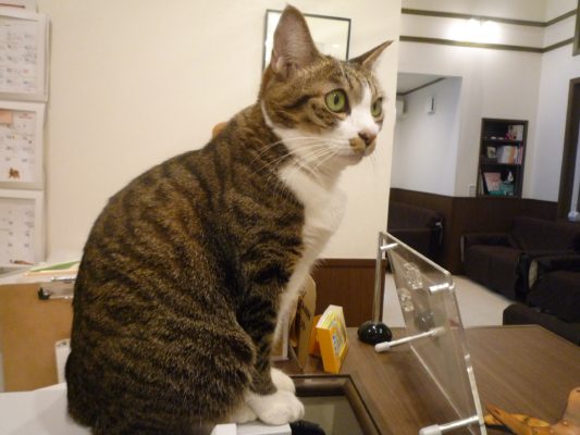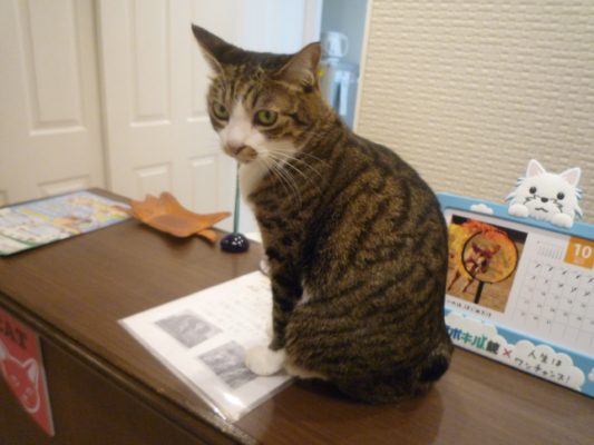 今日はキリッとどっしり構えていて看板猫になれそうな佇まいですが、やはり人が来ると走って逃げてしまいます(O_O)