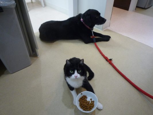 病院のこ達は基本はっちゃんの食べている物を奪わず、じゃれついたりはしません。