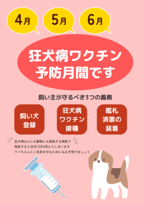 ※かがみ動物病院では、3/2から新年度の狂犬病予防注射を受け付けております。